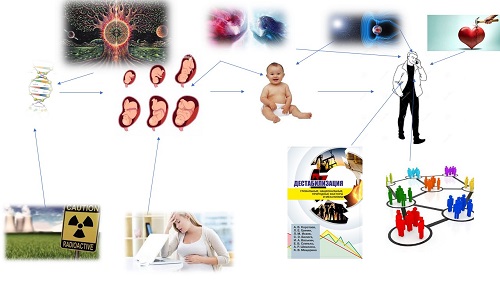Ученые утверждают, что живые органические системы обладают способностью к накоплению патологической информации (сохранению ее). Каким образом мы могли бы представить себе процесс накопления патологической информации? Современные исследования ДНК (дезоксирибонуклеиновой кислоты) показали, что внутри ее структуры, двойной спирали существует множество водородных мостиков, которые выглядят как ступеньки между скрученными боковыми «планками» винтовой лестницы. По Винсенту часть этих водородных мостиков разрушается при каждом глубоком биохимическом процессе (окислении), после чего происходит разрушение всей молекулярной цепи и в ядре клетки наступает беспорядок, следствием которого является то, что ядро больше не в состоянии нормально осуществлять функцию регуляции и управления. В дополнение к этому здесь может произойти накопление некоторых молекул минеральных веществ. Происходит изменение электромагнитных характеристик ДНК, и это означает, что происходит накопление патологической информации.