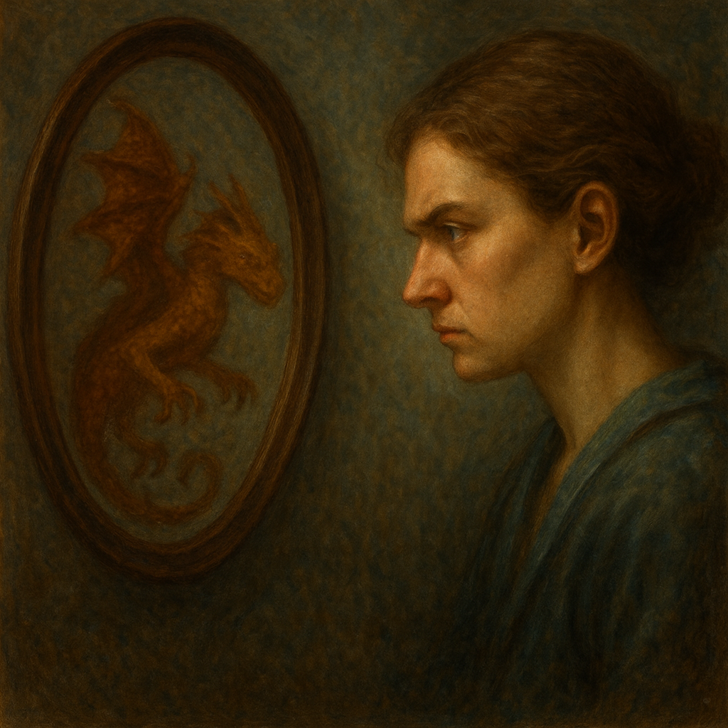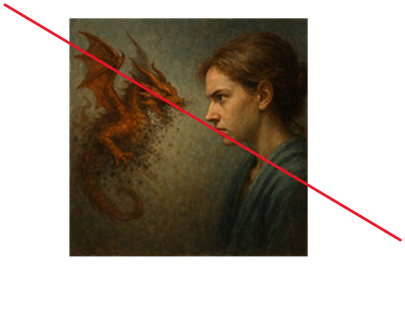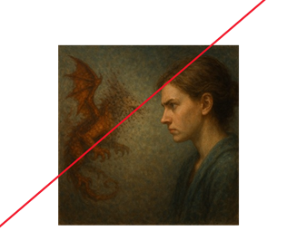 Параллель. Если посмотреть на картину, не зная ее истории и подоплеки, мы увидим удивительную иллюзию – не дракон «выглядит» по-разному в глазах наблюдателей, а наблюдатели ДЕРЖАТ дракона своими взглядами!