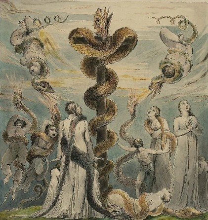 Когда Моисей «возносит» змея, он поднимает жизненную энергию из низшего состояния в высшее — от ропота и состояния жертвы к осознанию. Это своего рода древнееврейский архетип преображённой кундалини: яд превращается в лекарство.