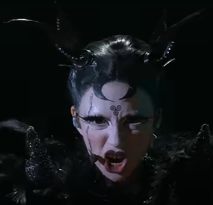 Bambie Thug выскочили на сцену в экстравагантном готическом стиле, в кругу из свечей устроили спиритический сеанс с призыванием черта, с которым потом и станцевали, укротив его черной магией.