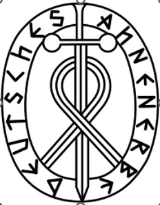 «Руна «Одал», символ семьи и кровного родства. Нагрудный знак сотрудников Главного управления СС по вопросам расы и поселений, а также эмблема 7-й горнострелковой дивизии СС «Принц Ойген», ставшей первым соединением в составе СС, укомплектованным исключительно «фольксдойче».