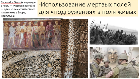 Так, к примеру, Часовня Костей в Португалии и еще несколько подобных использовались для внедрения или «подгружения» фрагментов мертвых душ в поля живых, чтобы ими было ЛЕГЧЕ МАНИПУЛИРОВАТЬ. То есть , и эта технология не нова.